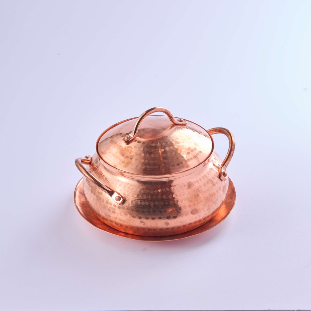 - Thiết kế truyền thống, dáng tròn, nắp và quai đồng nổi bật, tạo điểm nhấn sang trọng cho bàn ăn.